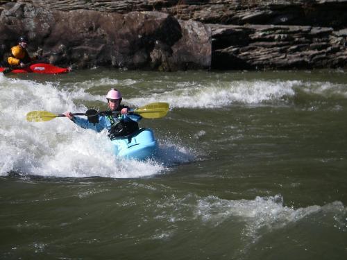 Playing the Five-O wave on the Mulberry. I’m not much of a play boater, but I love surfing.